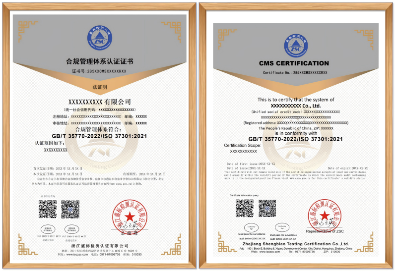 GB/T 35770-2022/ISO 37301:2021 合規管理體系認證證書(shū)模版: